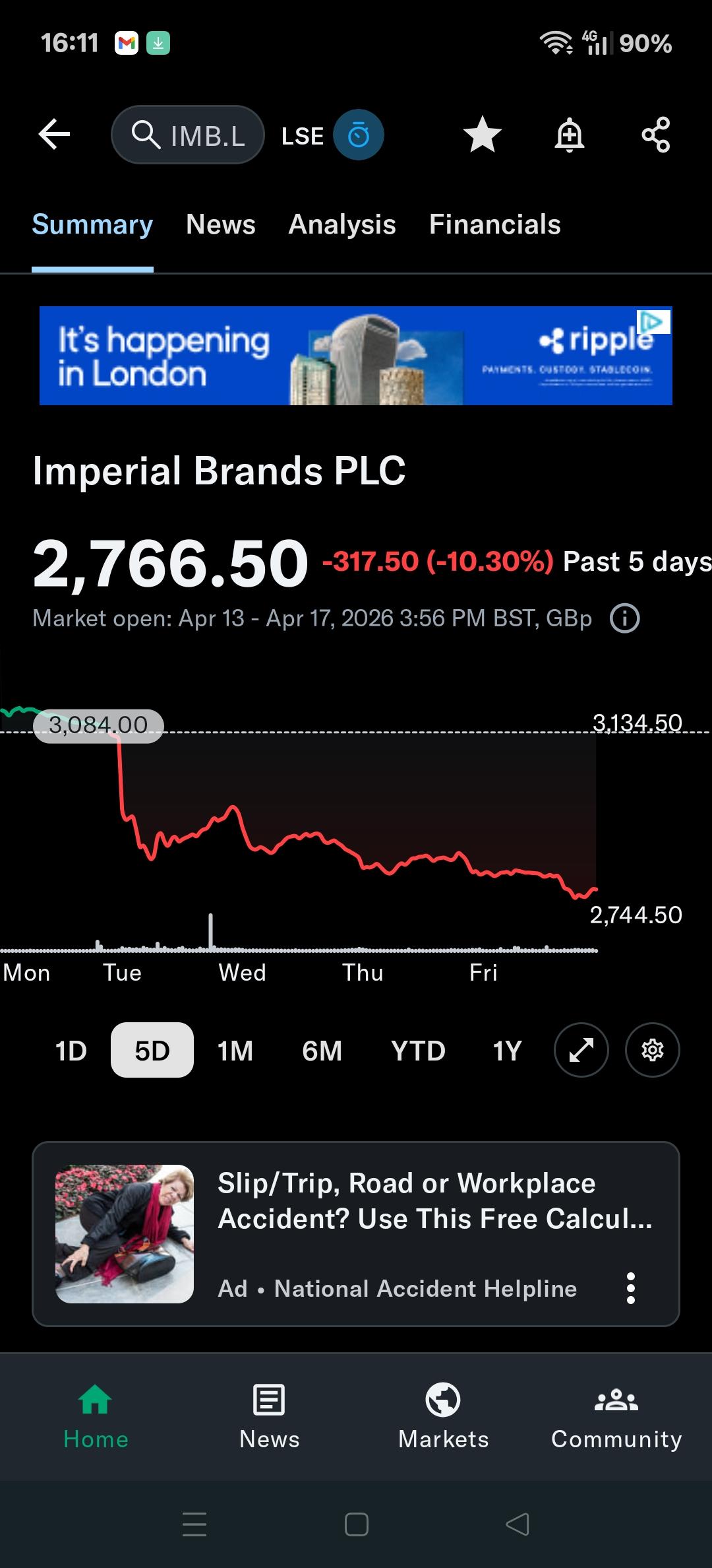 It's been falling beacuse it's losing money on vapes